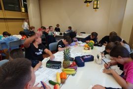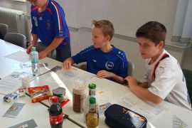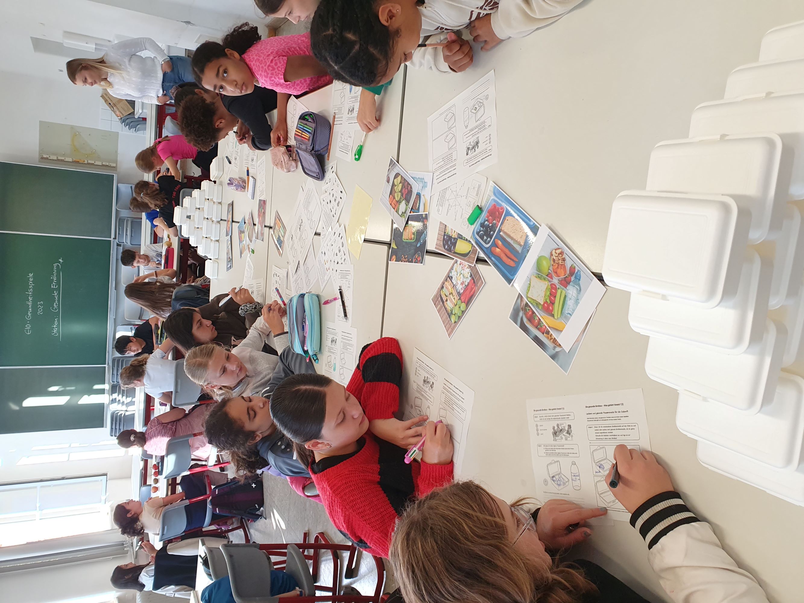 Das Modul Gesunde Ernährung greift hierbei Inhalte aus dem Biologieunterricht auf und vertieft diese spielerisch. So erforschen die SchülerInnen zum Beispiel, wie viel Zucker in Lebensmitteln versteckt ist, lernen Obst- und Gemüsesorten zu unterscheiden und in ihre Alltagsspeisen einzubinden. Auch bekommen sie vermittelt, wie sie ihre Frühstücksbox für die Schule sinnvoll bestücken. Dazu erhält jedes Kind – gesponsert durch den Förderverein der Eleonorenschule – eine eigene Frühstücksbox mit Trennwand, um täglich an das Einpacken eines gesunden Frühstücks erinnert zu werden.