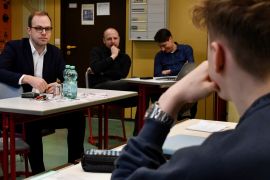 Holger Klötzner diskutiert mit Schülerinnen und Schülern
