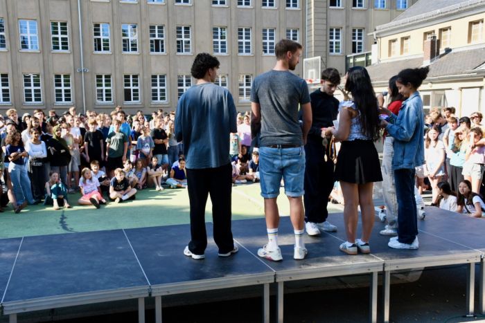 ... die im Sport (Bundesjugendspiele, Fußball, Schwimmen, Mountainbike), in Kunst oder in Mathe Besonderes geleistet hatten, oder die sich in Arbeitsgemeinschaften der Schule als Streitschlichter, Sanitäter, Medientechniker, in der Schülervertretung oder der Schülerzeitung für andere eingesetzt hatten. Schülerinnen und Schüler aus 16 Kategorien wurden von ihrer Schule mit Büchergutscheinen beschenkt.