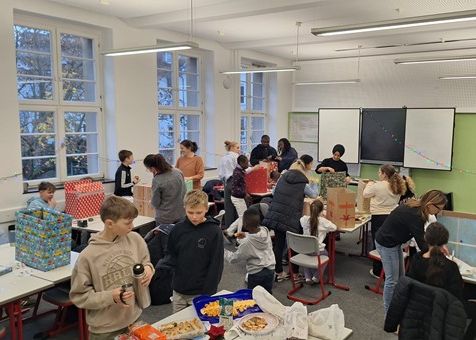 Mit viel Begeisterung und Kreativität gestalteten die Schülerinnen und Schüler die Pakete mit buntem Papier, Aufklebern und Schleifen und schufen so ganz individuelle, liebevolle Verpackungen. Dank der großzügigen Lebensmittelspende von Edeka Patschull konnten die Pakete der 5c mit Lebensmitteln wie Nudeln, Öl und Reis befüllt werden. In jedem Päckchen befand sich außerdem ein individuelles Geschenk, das die Kinder selbst ausgewählt oder gebastelt hatten, und vieles Weitere, das die Packliste der Johanniter vorgab.