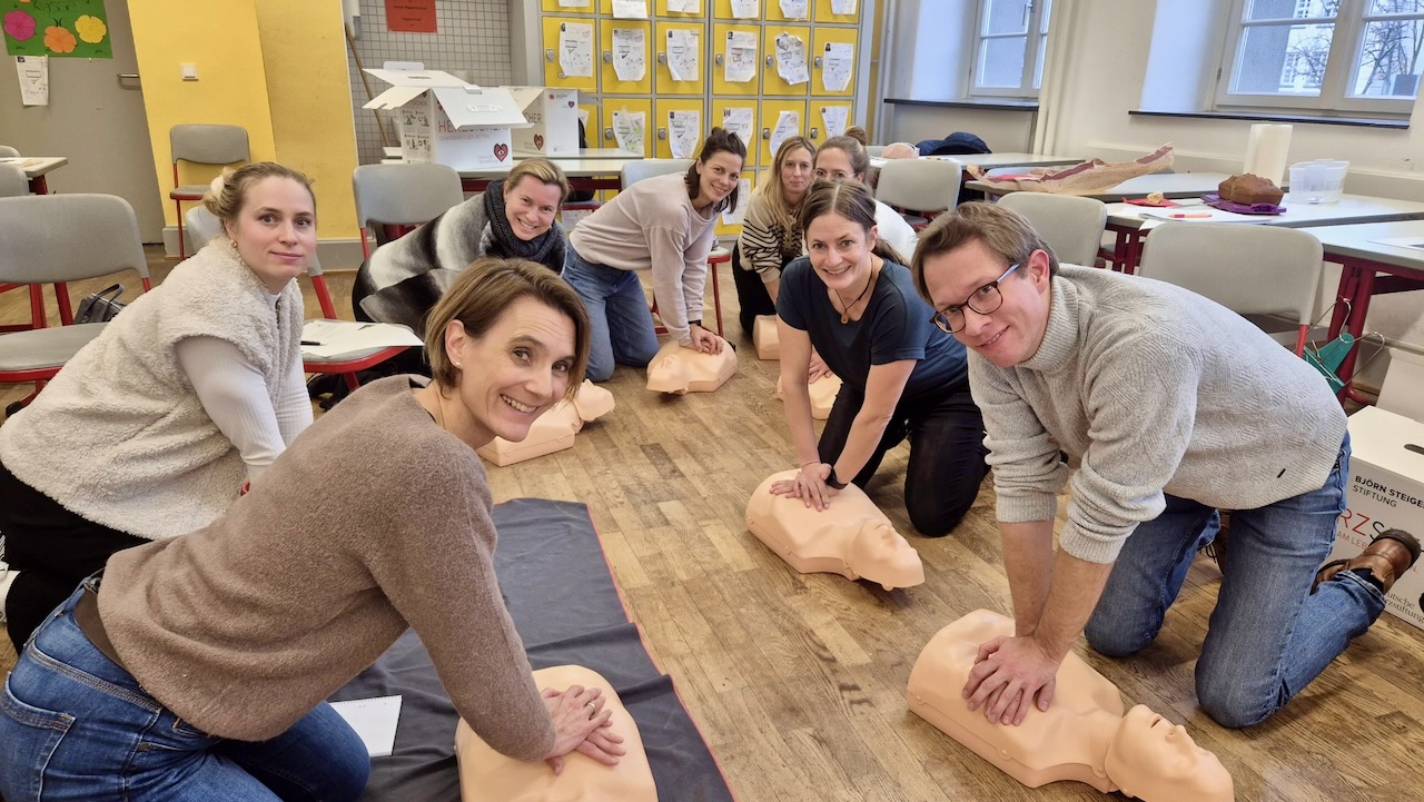 Die Biologielehrerinnen und -lehrer nahmen im November 2025 an einer Schulung teil, hierdurch konnten wir den Wiederbelebungsunterricht in den siebten Klassen weiter ausbauen.
