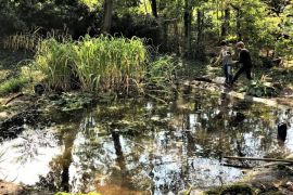 Jede Woche rückt Prof. Dr. Matthias Brinkmann vom Fachbereich Mathematik und Naturwissenschaften mit mobilen Test-Sets zur Wasseranalytik, großen Tauchpumpen und weiterem Material an, um die Biologie- und Forscher-AGs der Eleonorenschule bei der Optimierung der Wasserqualität der beiden Teiche im Schulgarten zu unterstützen. Nach ein paar technischen Erklärungen können die Schüler*innen aus den 5. bis 8. Klassen schon alle Gerätschaften bedienen und ziehen erste Schlussfolgerungen aus den aktuellen Ergebnissen der Wassertests. Mit viel Eifer und Spaß untersuchen sie das Teichwasser unter Anwendung verschiedener wissenschaftlicher Methoden und erproben Maßnahmen zur Verbesserung der Wasserqualität.