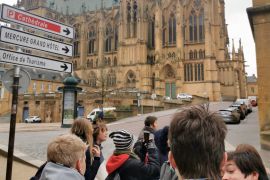 Das Programm dieser Begegnung lief unter dem Motto „Unsere unterschiedlichen Herkünfte bereichern uns, Teil 1“. Zum Thema „Migration“ präsentierten französische Schüler und Schülerinnen Plakate. Die Unterschiede der Kulturen konnten die Darmstädter Schüler und Schülerinnen jedoch auch direkt erleben. Sie lernten erstaunt die Andersartigkeit des französischen Schulalltags kennen und wunderten sich über französische Essgewohnheiten. Sie lernten u.a. in einem Bergwerksmuseum die Besonderheiten einer Region kennen, die vom ehemaligen Bergbau geprägt ist. Beim Besuch Verduns wurden die Grausamkeiten und die Absurdität der kriegerischen Auseinandersetzungen zwischen Frankreich und Deutschland im Ersten Weltkrieg deutlich, und damit der Wert der heutigen deutsch-französischen Freundschaft.
