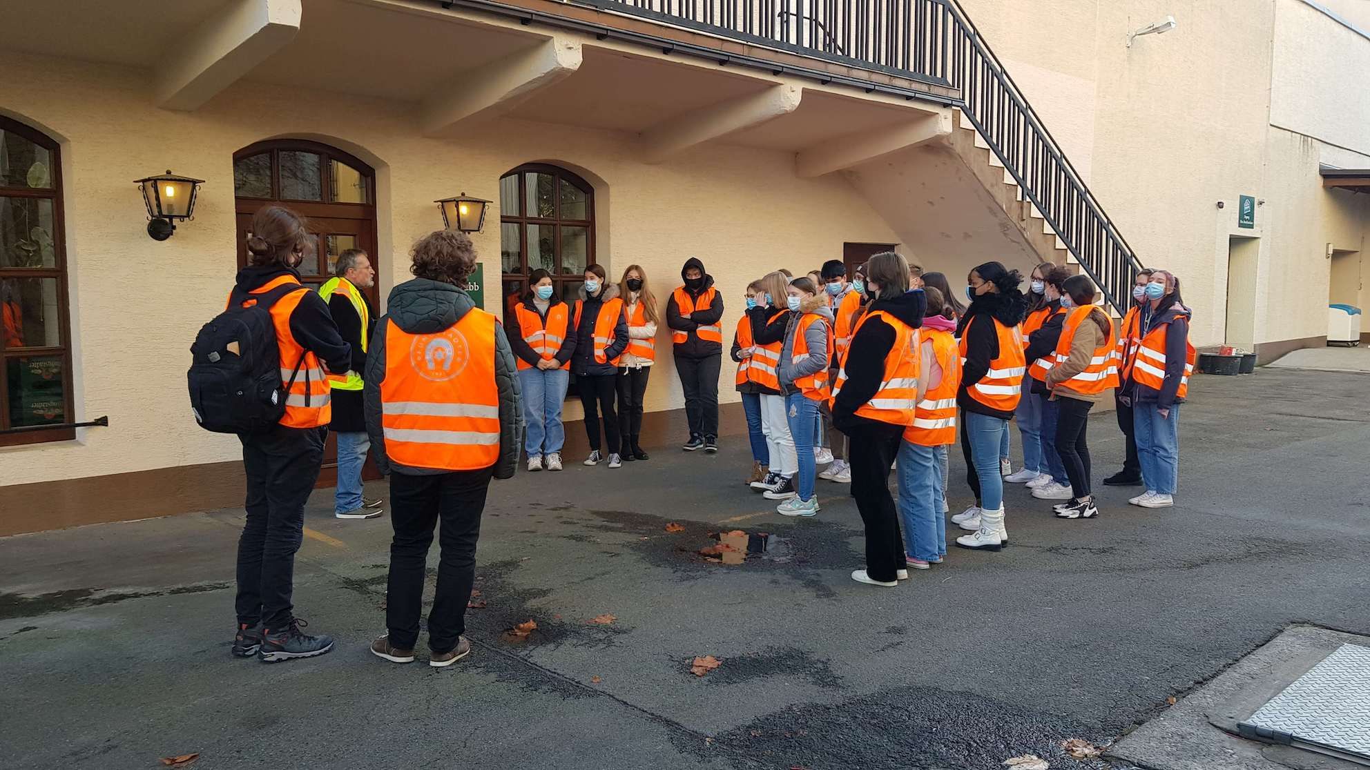 Die Schülerinnen und Schüler wurden fachkundig in die Geschichte der Pfungstädter Brauerei und die Abläufe der Bierherstellung eingeführt. Es wurde deutlich, dass hinter der Braukunst komplexe Verfahren stecken, die die Gruppe zum Teil in Grundzügen im Unterricht kennengelernt hat oder noch kennenlernen wird: Enzymatik, Titration, Gleichgewichtsreaktionen usw.
