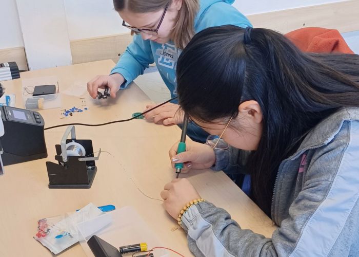 Und wieder war es soweit, dass 20 naturwissenschaftlich und mathematisch interessierte Schülerinnen sich im Rahmen der Begabungsförderung an der Technischen Universität Darmstadt ausprobieren durften. In fünf Workshops für jeweils unterschiedliche Jahrgangsstufen konnten die Schülerinnen unter fachkundiger Betreuung Roboter zusammenbauen und per Arduino zum Tanzen bringen, geheime Nachrichten mit Lichtcodes versenden, kleine Tesla-Spulen zusammenbauen und löten, um damit Blitze zu bändigen, Pulsoxymetriegeräte mit Python in Gang setzen und Energie durch die Luft schicken. Krönender Abschluss war für die Blitze-Gruppe natürlich der Besuch in der Hochspannungshalle und für alle der gemeinsame Gang zur Mensa.