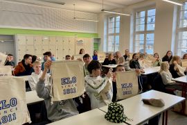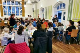 Die Franzosen sollten bis zum 22. März bleiben. In dieser Zeit erlebten die Schüler und Schülerinnen gemeinsam ein vielfältiges Programm mit Tagesausflügen nach Mainz und Frankfurt, einer Darmstadt-Rallye, Unterricht an der ELO, verschiedenen Spielen und einem Kunstprojekt zur Herkunft der eigenen Familie. Hierbei wurde eine kulturelle Vielfalt deutlich, die sich am Buffet des Abschlussabends eindrücklich mit allen Sinnen erfahren ließ. Es bestand aus vielen von den Eltern appetitlich zubereiten Gerichten der verschiedenen Landesküchen.