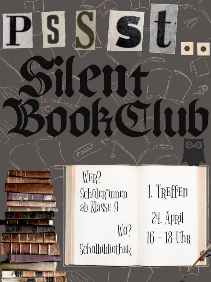 Der Silent Book Club wird wieder nach den Sommerferien stattfinden. Wer Lust hat, inmitten des Alltags eine Ruheoase zu finden, um sich einfach mal Zeit zum Lesen zu nehmen, ist herzlich eingeladen! Es darf alles gelesen werden, wonach der Sinn steht, und wer noch auf der Suche ist, wird sicherlich in unserer Bibliothek fündig.