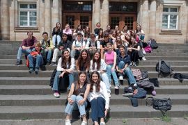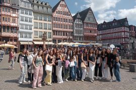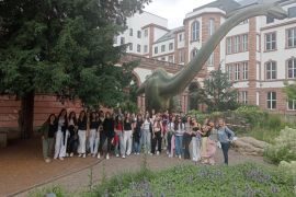 Am Montag schließlich lernten die Teilnehmenden den Schulalltag kennen und rundeten den Tag mit einer Rallye durch Darmstadt ab. Am darauffolgenden Tag stand die Metropole Frankfurt am Main im Fokus - Senckenbergmuseum, Alte Oper, Römer und Domturm inklusive. Der Mittwoch führte die Gruppe nach Mainz, wo es eine Führung durch die Altstadt sowie den Dom gab und abschließend ein Eis direkt am Rhein gegessen wurde. Am Abend kamen die Austauschfamilien im Schulgarten zusammen, um den letzten Abend gemeinsam beim Grillen ausklingen zu lassen. Am Donnerstag, den 06. Juni, nahmen die Schülerinnen und Schüler vormittags noch am Unterricht teil, bevor es am Nachmittag „Abschied nehmen“ hieß. Dabei ist bei manch einem Tandem durchaus ein Tränchen geflossen…