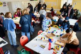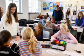 Während die Eltern zu Beginn noch von der Schulleitung über die guten Gründe, unsere Schule zu wählen, informiert wurden, ließen sich ihre Kinder von Elo-Schüler-Scouts ganz praktisch bereits durch die Räumlichkeiten und Angebote der Schule führen. Zahlreiche 'handlungsorientierte' Stationen in allen Unterrichtsräumen der Gebäude sorgten für Unterhaltung der Kinder und schafften Gelegenheiten für Eltern, sich zu informieren.