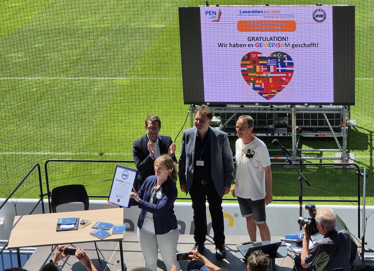 Nachdem der Weltrekord aufgestellt war, erhielten alle eine Urkunde und zur Feier des Tages eine Freikarte für ein Lilienspiel. Die Freude bei den Schülerinnen und Schülern war groß! Und der ein oder andere hat vielleicht so eine Idee für neues Lesefutter in den Sommerferien bekommen…