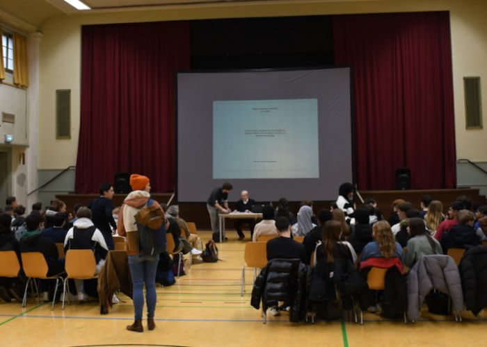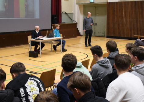 Die eineinhalb Stunden Unterrrichtszeit reichten für Herrn von Keussler und die Schülerinnen und Schüler der aktuellen Q3, auf deren Lehrplan der Mauerbau nur eine untergeordnete Rolle spielte, kaum aus. Der ungeheuer vitale Herr schlug mit der begleitenden Präsentation von Fotos, Karten und Karikaturen einen Bogen vom Kriegsende '45, seiner eigenen Fluchtgeschichte als Kind, über die Grenzziehung, Berlinblockade, Mauerbau bis zum Mauerfall.Diese Unmittelbarkeit der Darstellung, vermittelt durch die Biographie eines "echten" Menschen, ist – so die erneute Erfahrung der begleitenden Geschichtslehrer – durch kein Lehrbuch oder Video zu ersetzen.